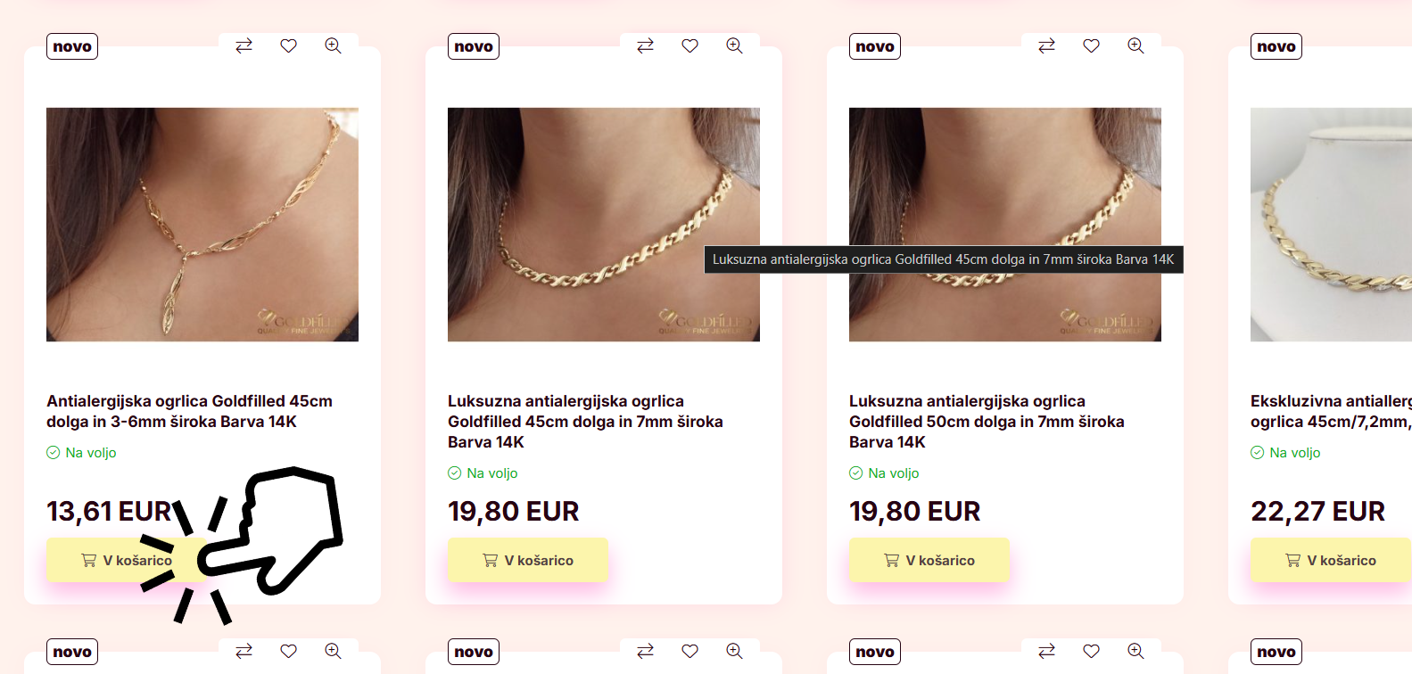 2. PO IZBIRI PRAVEGA IZDELKA GA POSTAVITE V KOŠARICO S TIPKO ZA DODAJANJE V KOŠARICO.